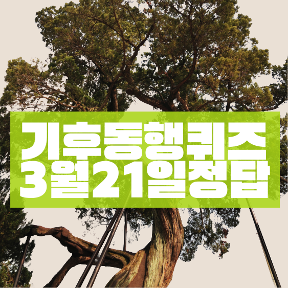 | 기후동행퀴즈 3월 22일 정답 해석 기후위기 대응 숲 조성 식목에만 있을까? (0) | 2026.03.22 |